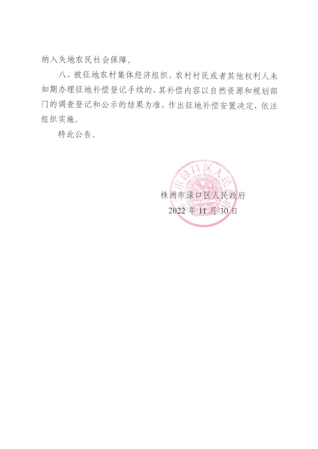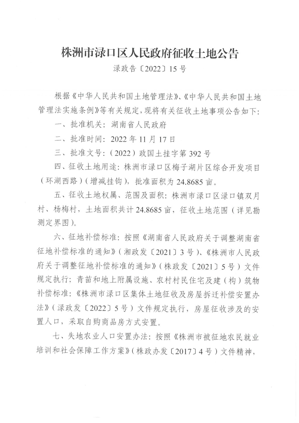 best365网页版登录_Bets365_36365快速检测中心渌口区人民政府征收土地公告(渌政告【2022】15号)