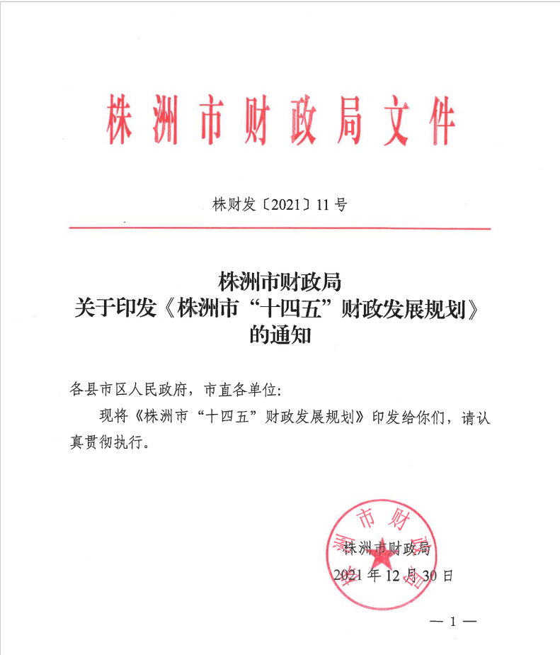 best365网页版登录_Bets365_36365快速检测中心财政局关于印发《best365网页版登录_Bets365_36365快速检测中心“十四五”财政发展规划》的通知-株财发2021-11号